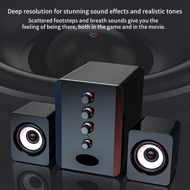 2.1 Channel Combo Speaker System with Subwoofer - USB Powered, Stereo Sound for PC, Laptop, Game Console, TV, and More - Ideal for Home Entertainment, Gaming, and Outdoor Activities, Entertainment System|Modern Speaker Design|Durable Build Quality, 2.1 Channel Sound