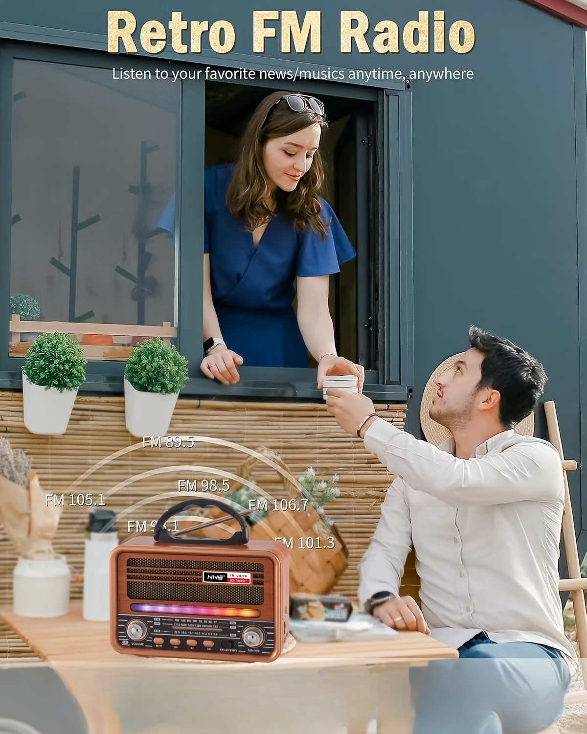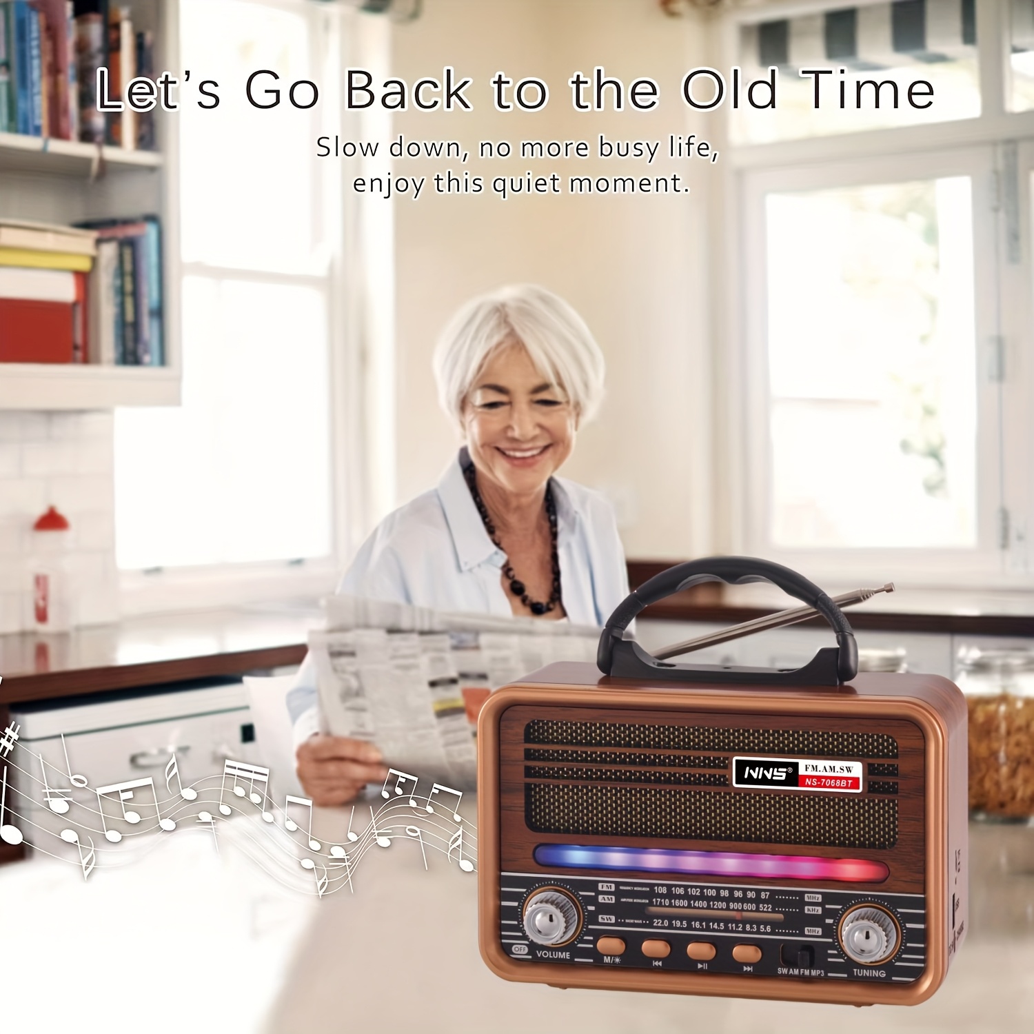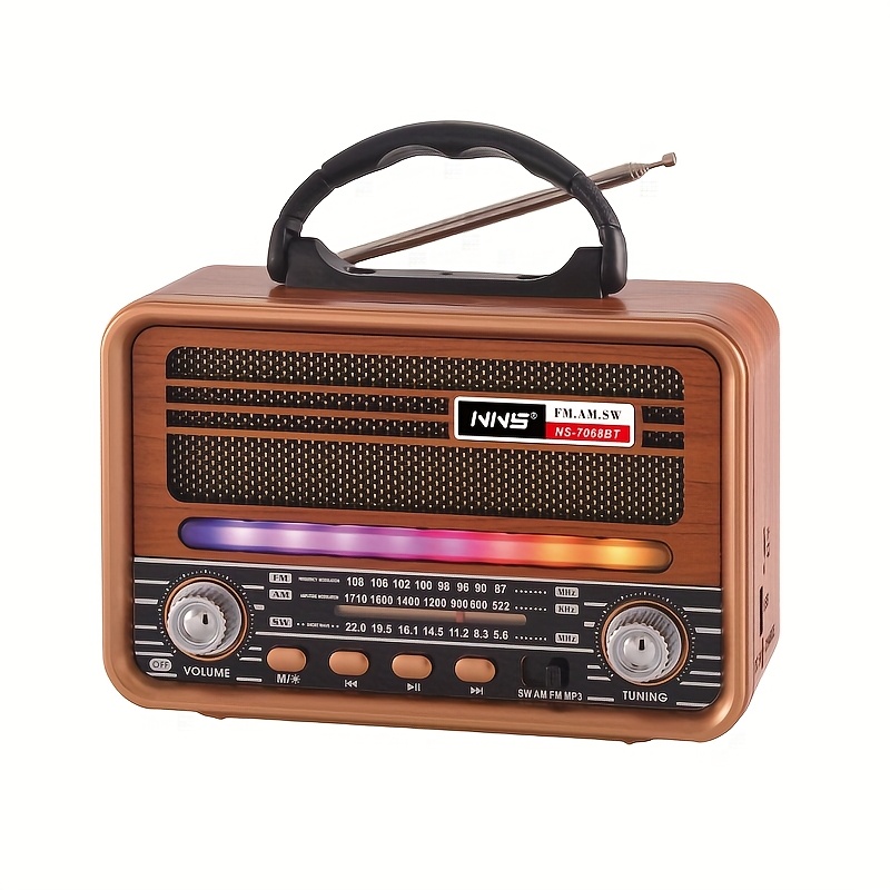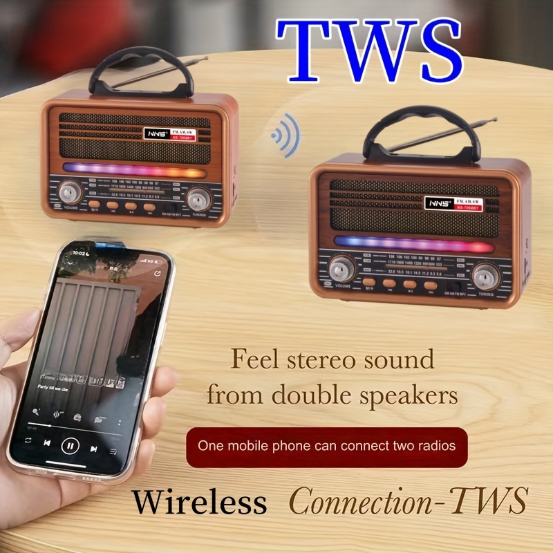 Vintage Wood Grain Retro Radio - Wireless, Stereo Sound, AM/FM/SW Bands, Portable Speaker with USB/TF Card Player, TWS Pairing, LED Lights, Rechargeable Battery for Home and Outdoor Use