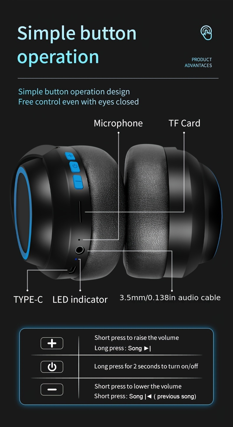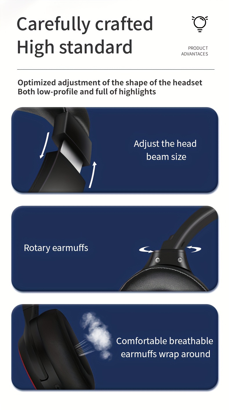 D-815Head-mounted wireless gaming headphones with large earmuffs, over-ear headphones, large battery, long battery life, heavy bass, HiFi heavy bass headphones with radio function, game music ears, foldable, adjustable, rotatable headphones, can answer calls, wireless supports TF card playback, AUX cable, smart device, large speaker Type-C interface headphones can switch to music headphones, Wired Headphones, Headphones Noise Cancelling, Headphones Wired, Gaming Headset,