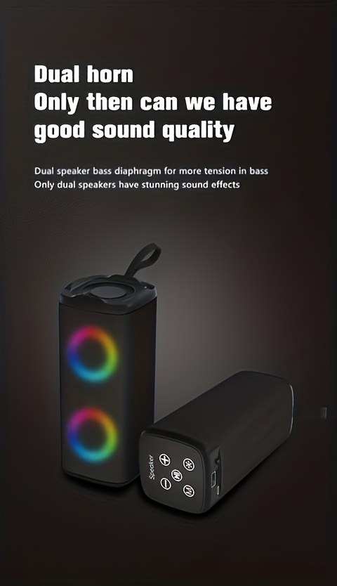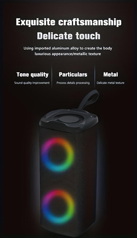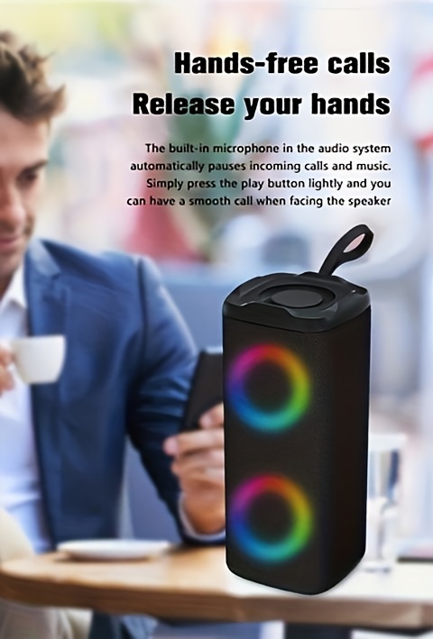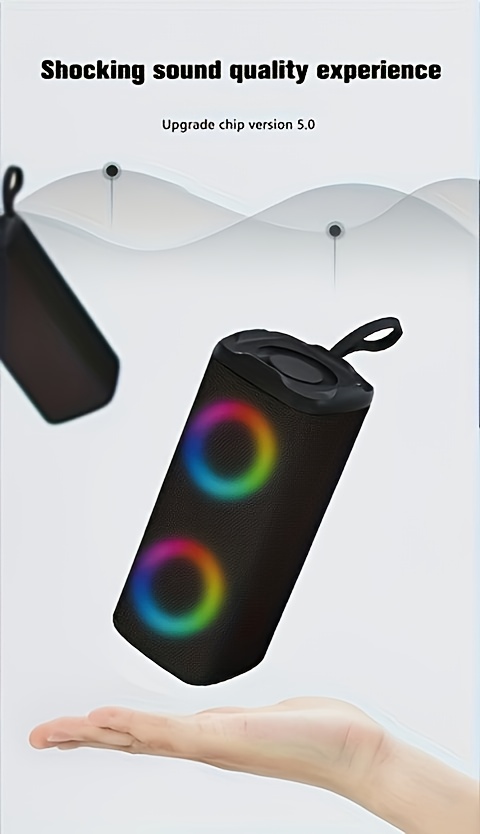 [Portable Wireless Speaker] 1pc Multifunctional Wireless Portable Speaker with LED Lights, USB-C Charging, 5W Stereo Sound, 7-Color Changing Lights, Compact Design for Home & Outdoor Use - Black, Portable Wireless Speaker, Outdoor Audio, Modern Audio Gear, Durable Audio Device, Wireless Speaker, Powerful Wireless Speaker