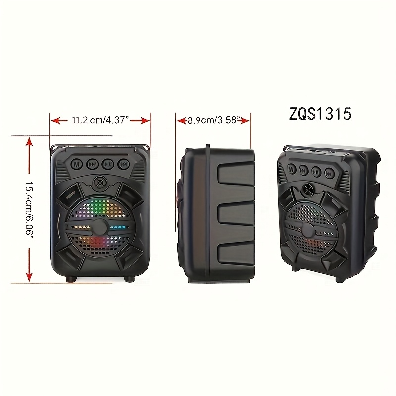 Portable Wireless Speaker Anti-fall Super Bass Outdoor Portable Speaker ZQS1315 Wireless Speaker with LED Light TF/USB/FM/AUX/WIRELESS Karaoke Wireless Speaker with portable phone holder, Perfect for Live Music, Home Party