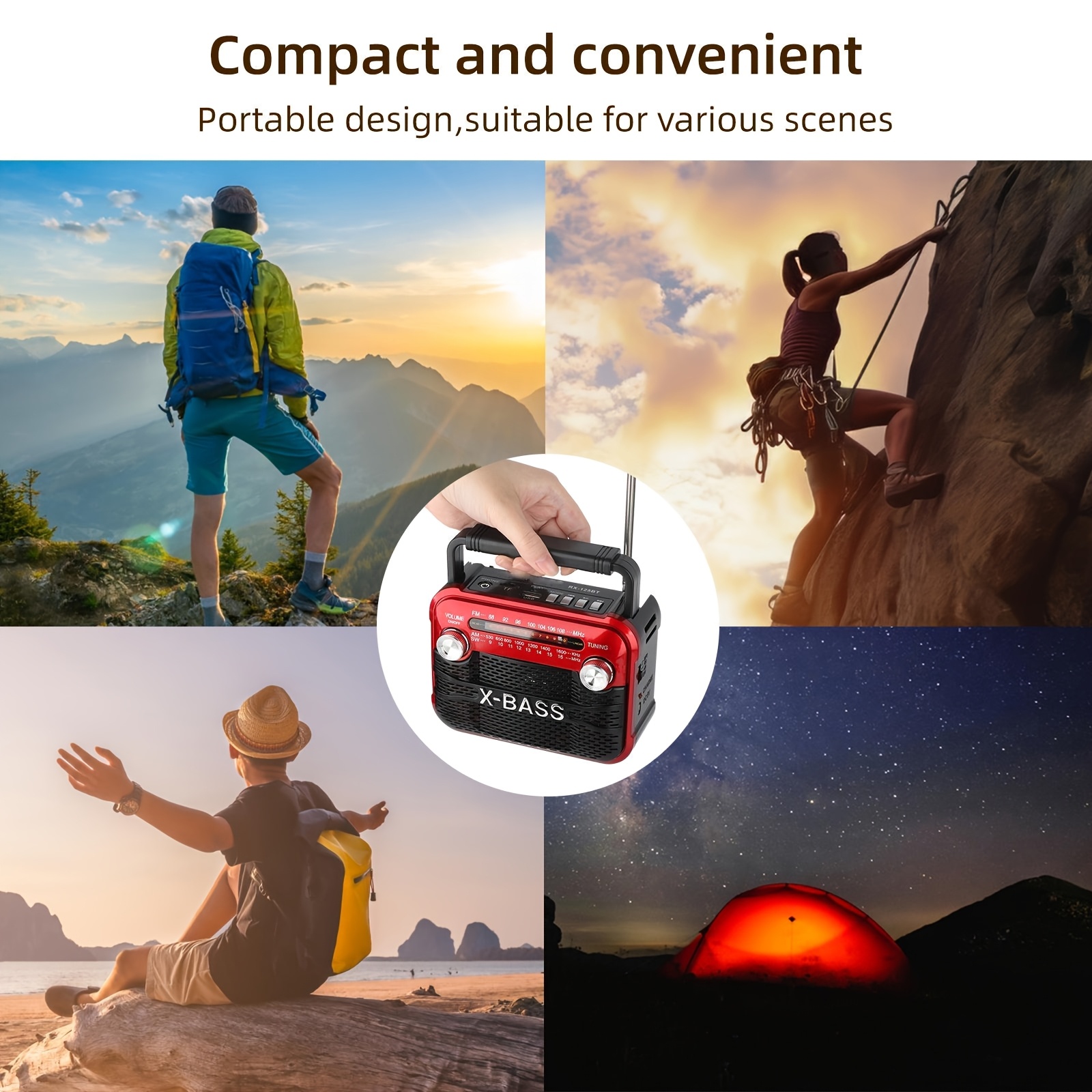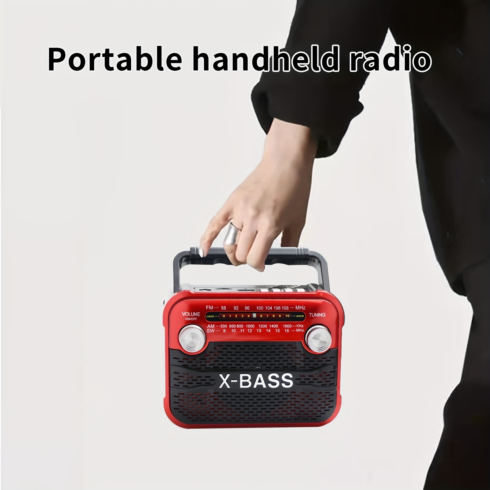 X-BASS Portable FM Radio with Flashlight - 800mAh Rechargeable Battery, Multi-Band (FM/AM/SW1-6), USB/TF/BT Playback, 2-4H Playtime, Red & Black, Ideal for Indoor & Outdoor Use, Radio Portable Rechargeable