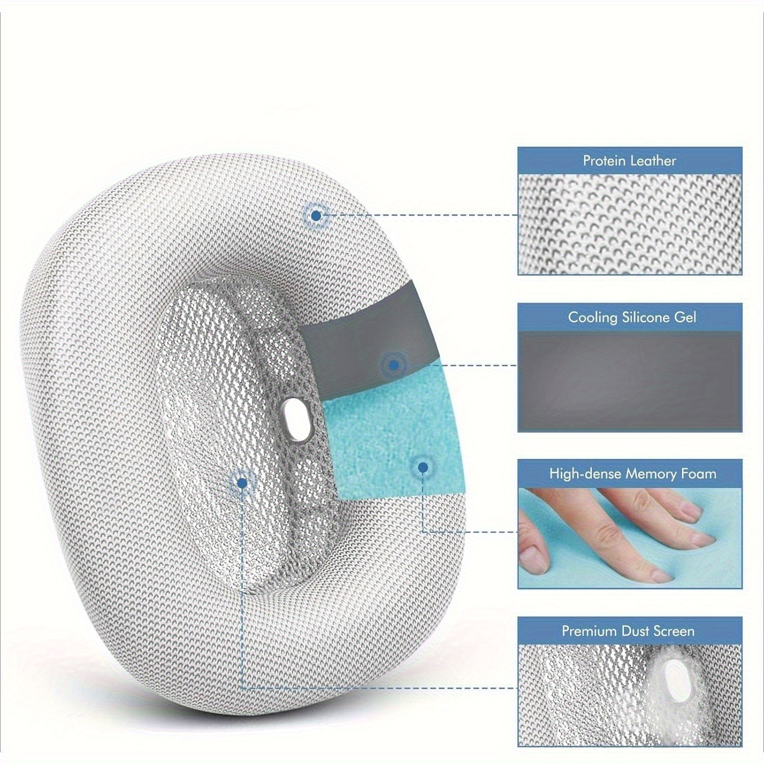 1Pair Earpads Cushions for Max Wireless Headphone, Ear Pads Replacement Sponge Cover with Knit-mesh Structure, Noise Isolation Foam, Headset Spare Accessories