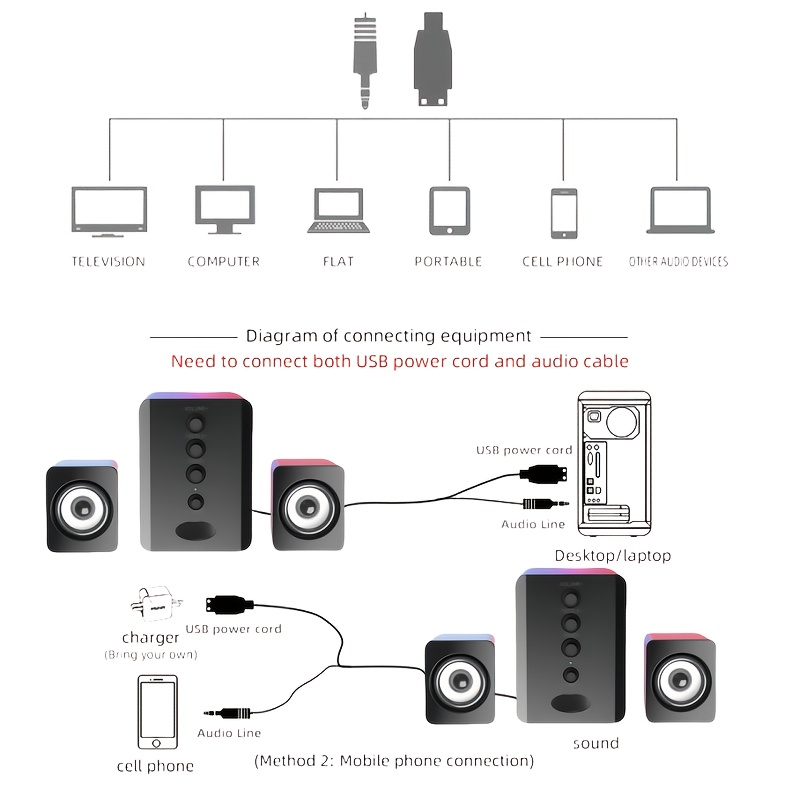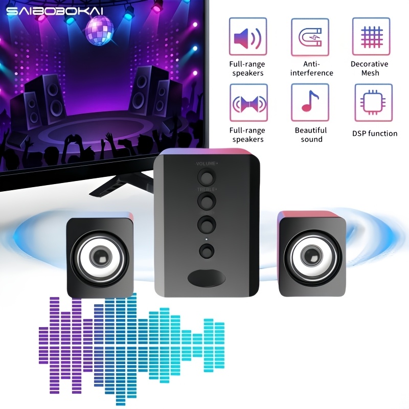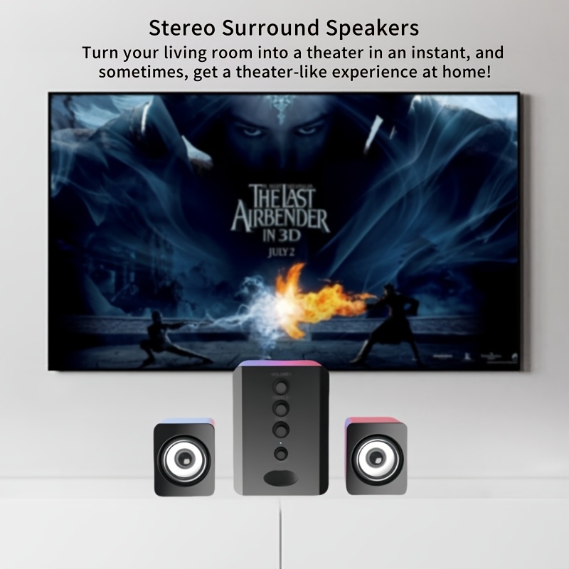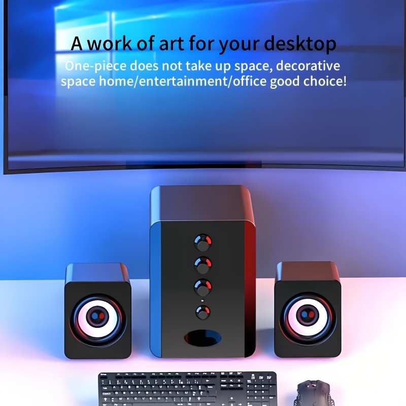 2.1 Channel Combo Speaker System with Subwoofer - USB Powered, Stereo Sound for PC, Laptop, Game Console, TV, and More - Ideal for Home Entertainment, Gaming, and Outdoor Activities, Entertainment System|Modern Speaker Design|Durable Build Quality, 2.1 Channel Sound