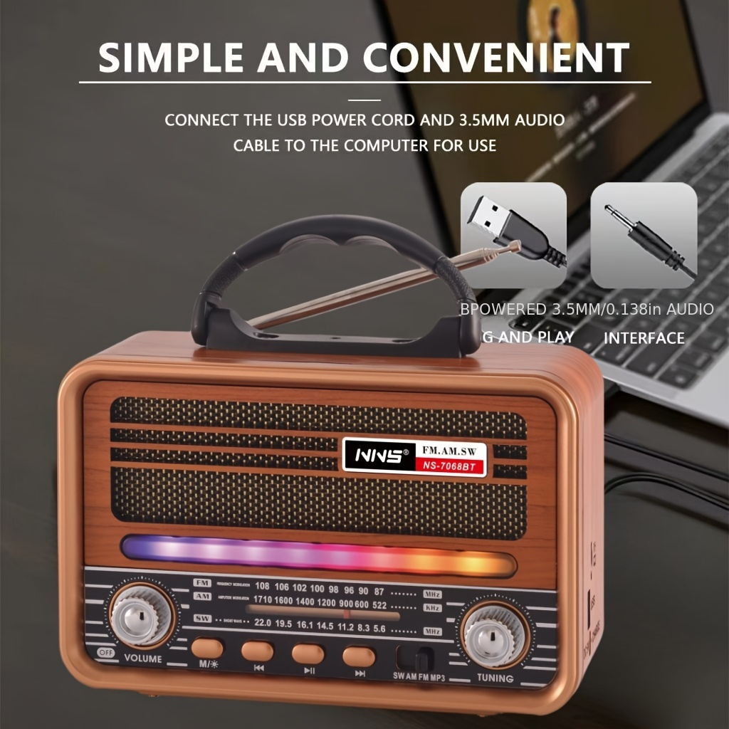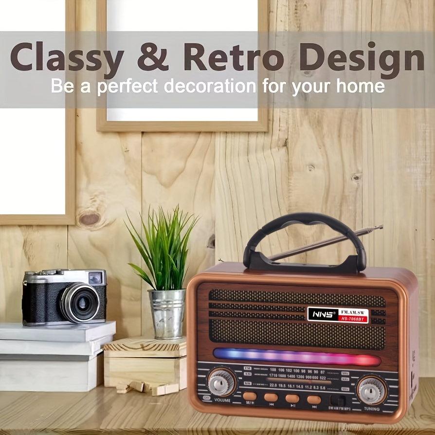 Vintage Wood Grain Retro Radio - Wireless, Stereo Sound, AM/FM/SW Bands, Portable Speaker with USB/TF Card Player, TWS Pairing, LED Lights, Rechargeable Battery for Home and Outdoor Use