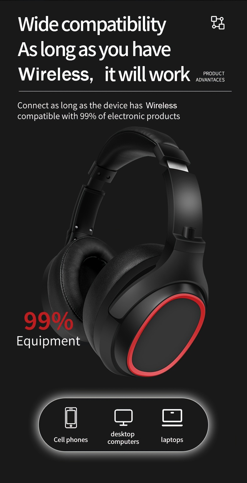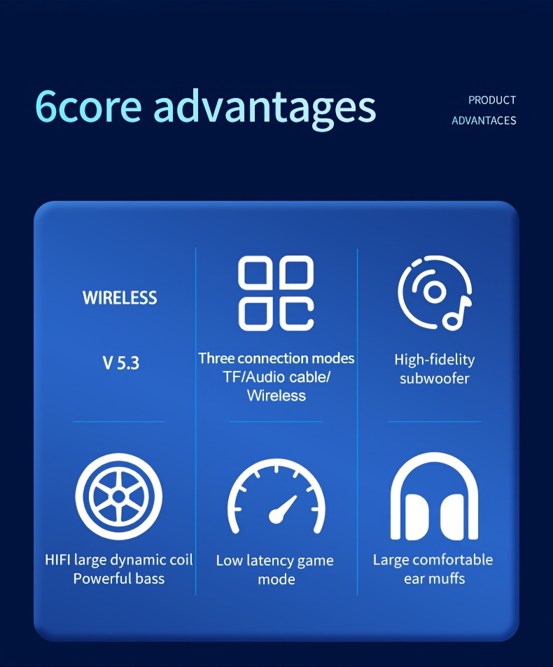 D-815Head-mounted wireless gaming headphones with large earmuffs, over-ear headphones, large battery, long battery life, heavy bass, HiFi heavy bass headphones with radio function, game music ears, foldable, adjustable, rotatable headphones, can answer calls, wireless supports TF card playback, AUX cable, smart device, large speaker Type-C interface headphones can switch to music headphones, Wired Headphones, Headphones Noise Cancelling, Headphones Wired, Gaming Headset,