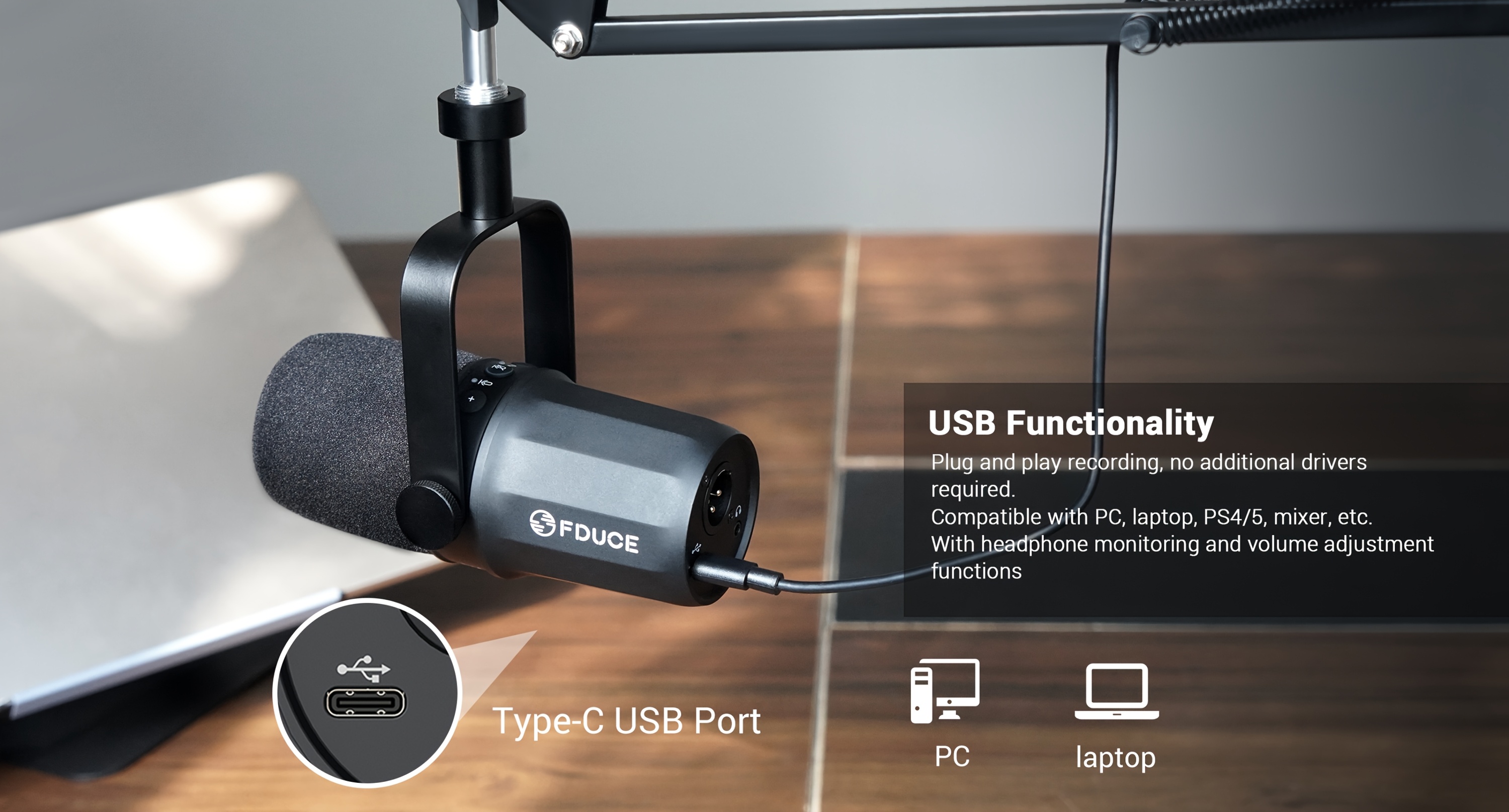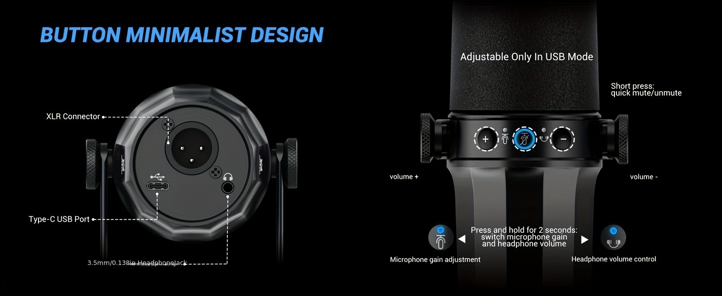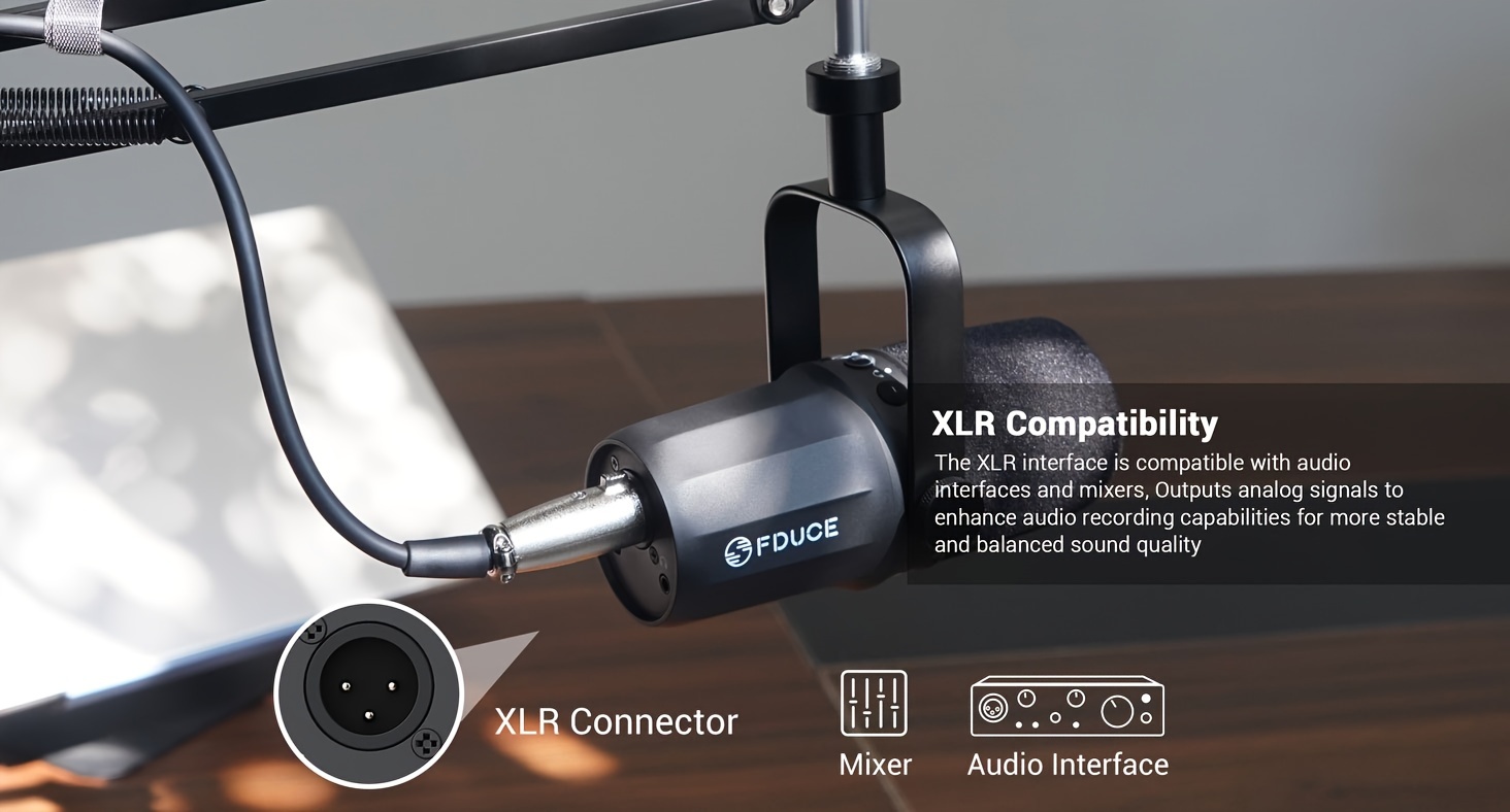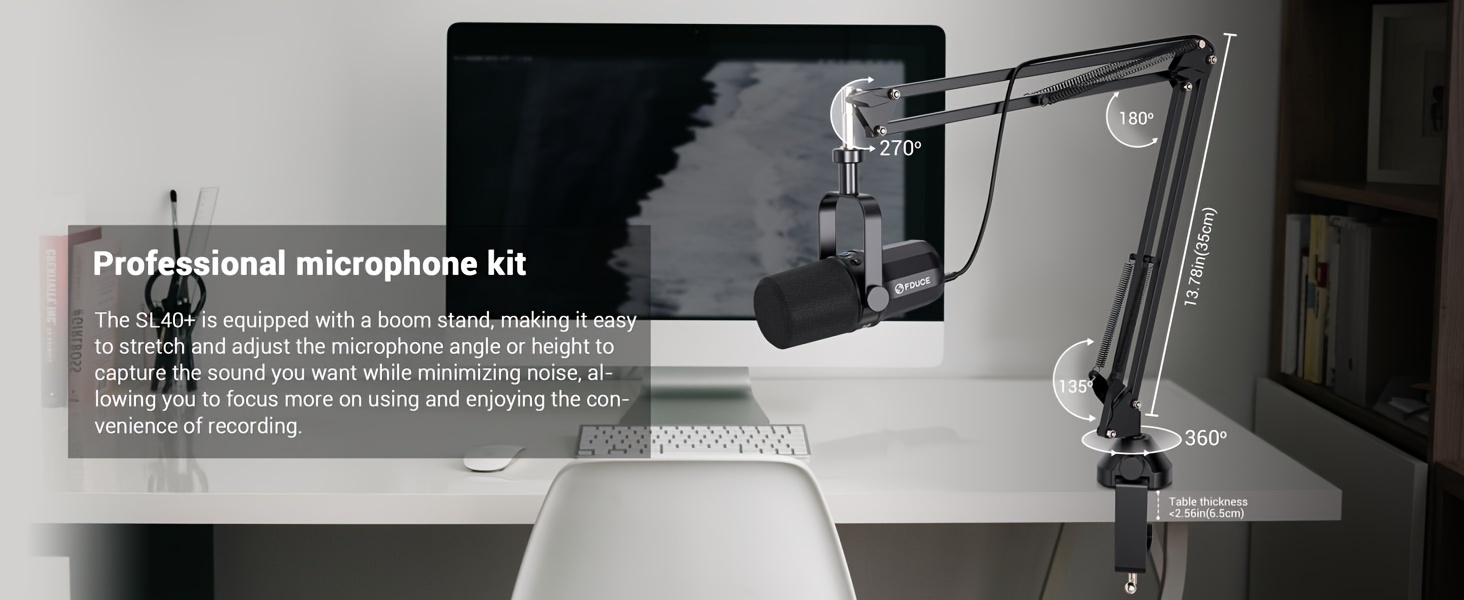 [FDUCE SL40+ Microphone] FDUCE SL40+ Microphone: USB/XLR Dual Connection, Digital/Analog Voice Isolation, Audio Balancing, Silence Function, 96 kHz/24 Bit Support. Plug and Play, Compatible with Computers