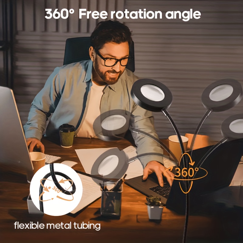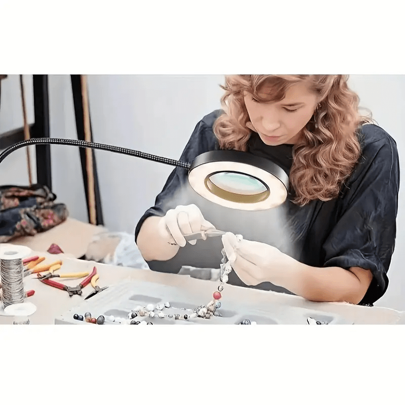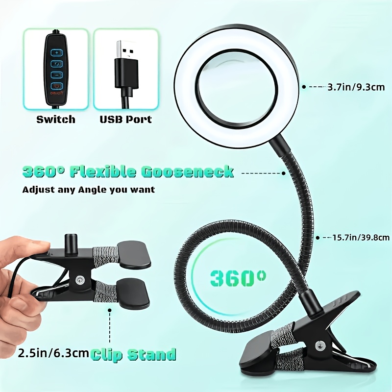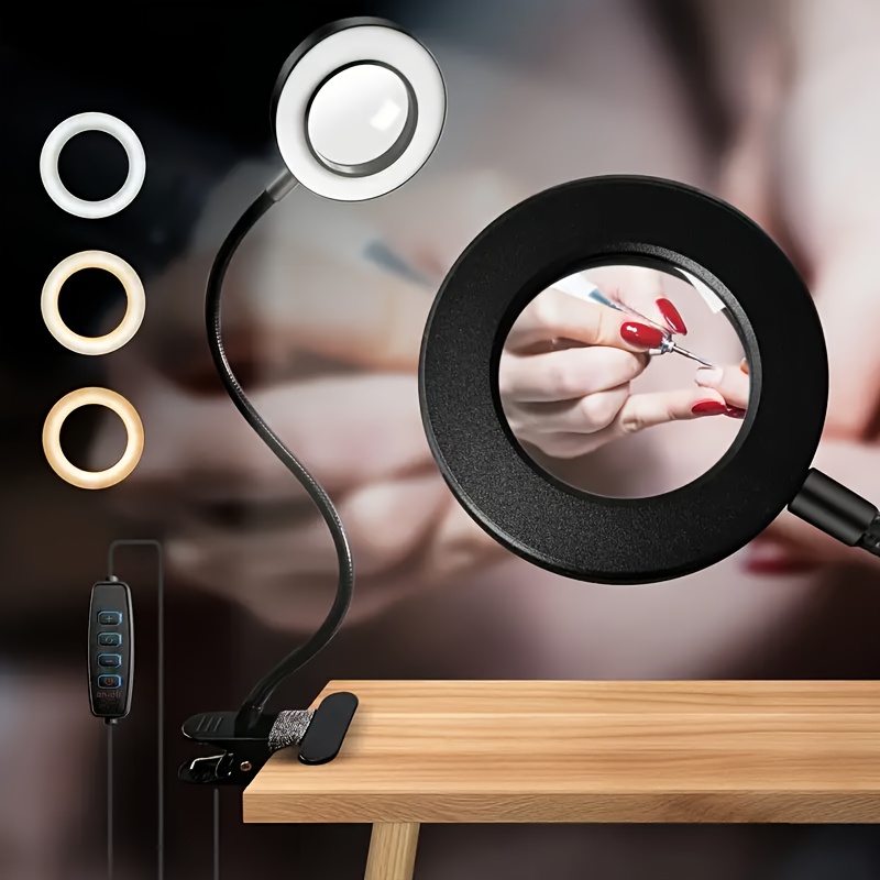 10X Magnifying Glass with Light & Clamp - 5 Inch Real Glass Magnifying Desk Lamp with Stand, Long Gooseneck, 5 Color Modes, USB-Powered, Hands-Free Operation, Ideal For Crafts, Painting, Jewelry Making, And Close Work, Magnifying Glass For Crafts