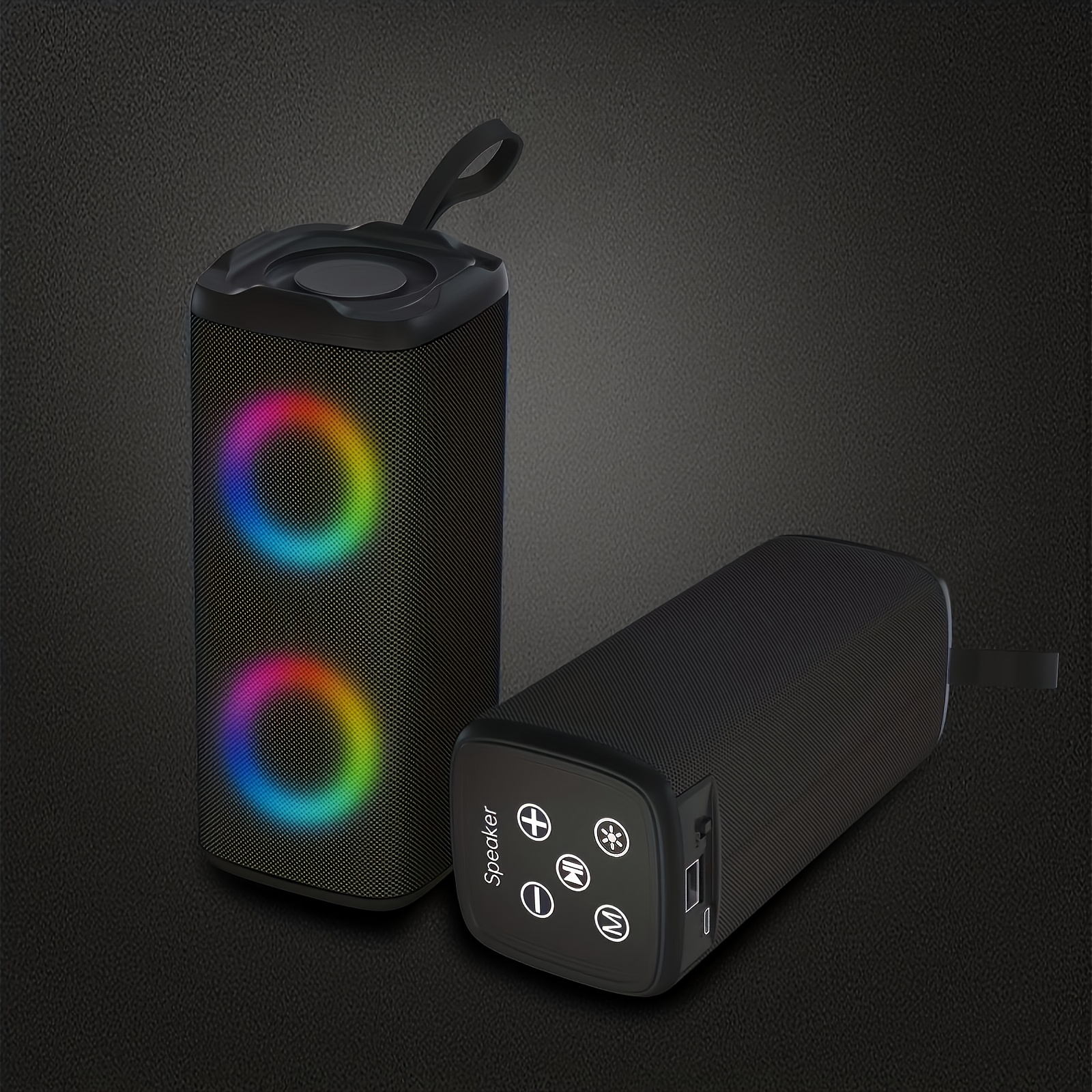 [Portable Wireless Speaker] 1pc Multifunctional Wireless Portable Speaker with LED Lights, USB-C Charging, 5W Stereo Sound, 7-Color Changing Lights, Compact Design for Home & Outdoor Use - Black, Portable Wireless Speaker, Outdoor Audio, Modern Audio Gear, Durable Audio Device, Wireless Speaker, Powerful Wireless Speaker