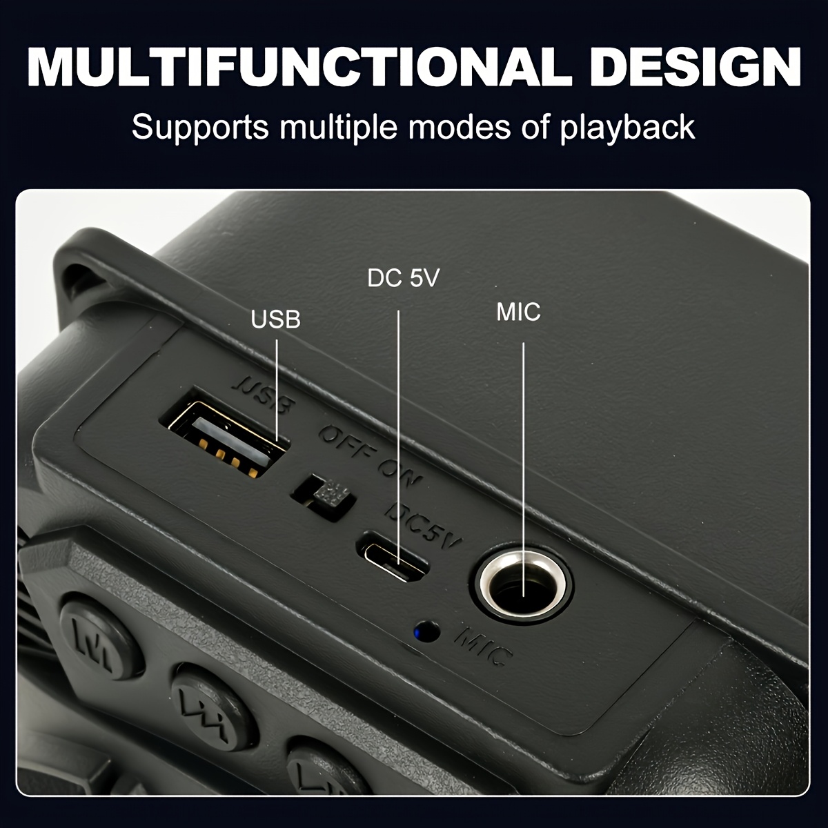 Portable Wireless Speaker Anti-fall Super Bass Outdoor Portable Speaker ZQS1315 Wireless Speaker with LED Light TF/USB/FM/AUX/WIRELESS Karaoke Wireless Speaker with portable phone holder, Perfect for Live Music, Home Party