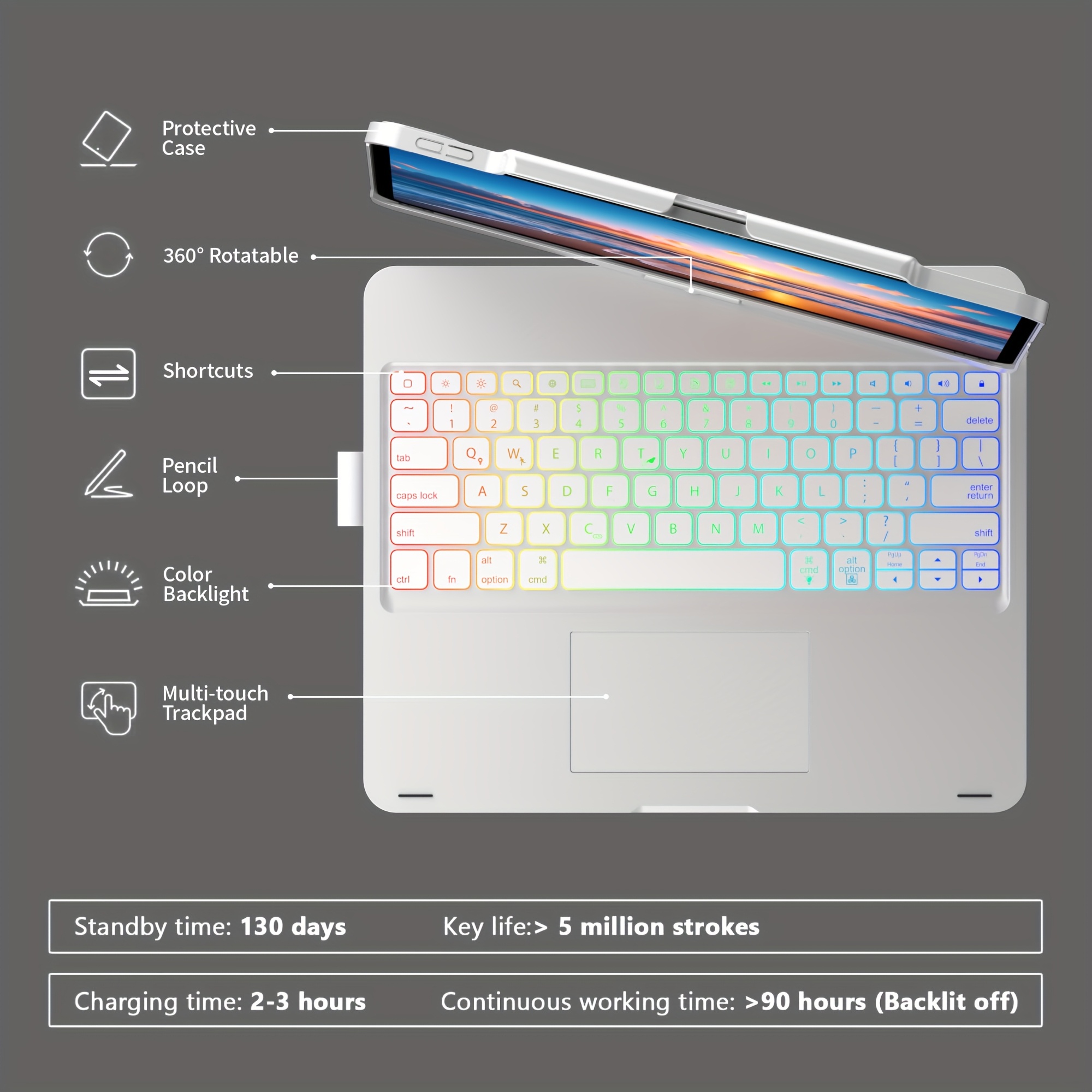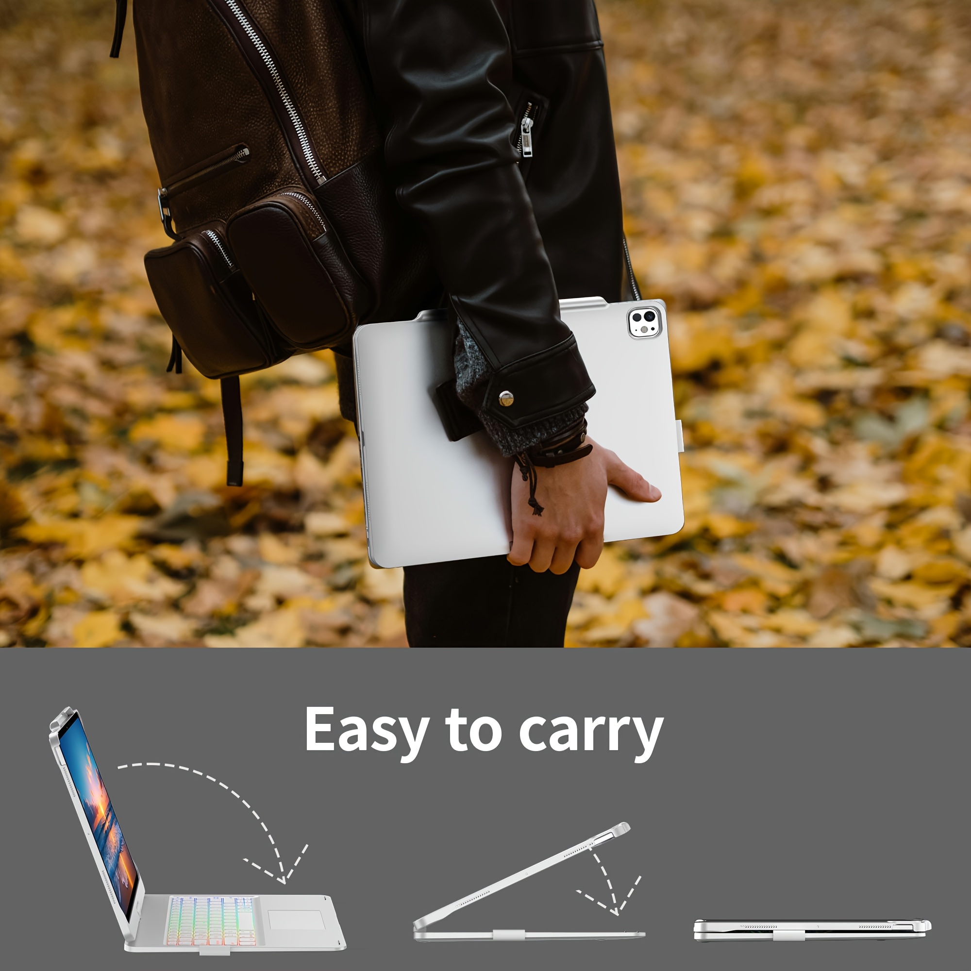 Rotatable Bracket&Touch Case With Keyboard For IPad Pro 13-inch (M4, 2024), for IPad Air 13-inch (M3, 2025/M2, 2024) & for IPad Pro 12.9 (6th/5th/4th/3rd Gen), Trackpad, 360° Rotatable, Mixed Colors Backlit.